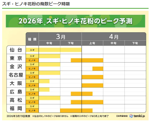 ②いつ頃から花粉は飛び始めて、終わるのは?