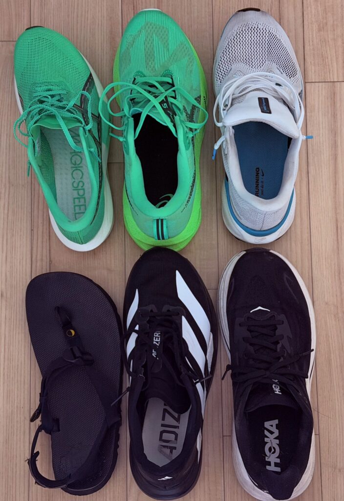 ランニングを始めた当初はナイキとアシックスが多かったですが、最近はアディダスやHoka、Onなど様々なメーカーのシューズを愛用しています。