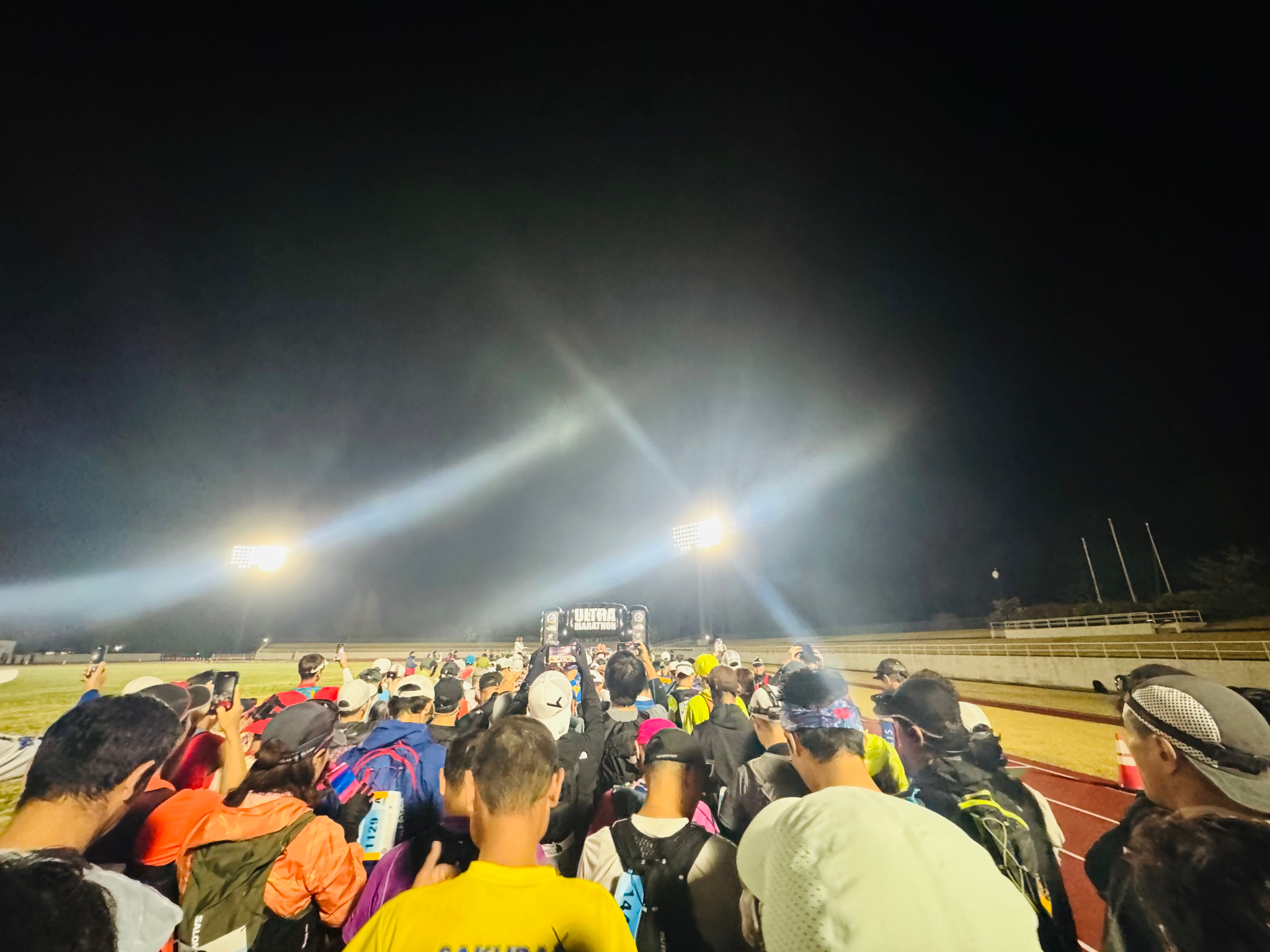 パワーウォーク(早歩き)も取り入れながらのゴールでしたが、振り返ると限界の前兆は各エイドで欠かさず実施していたストレッチ(屈伸、伸脚、アキレス腱伸ばしなど)の屈伸が出来なくなったときでした。