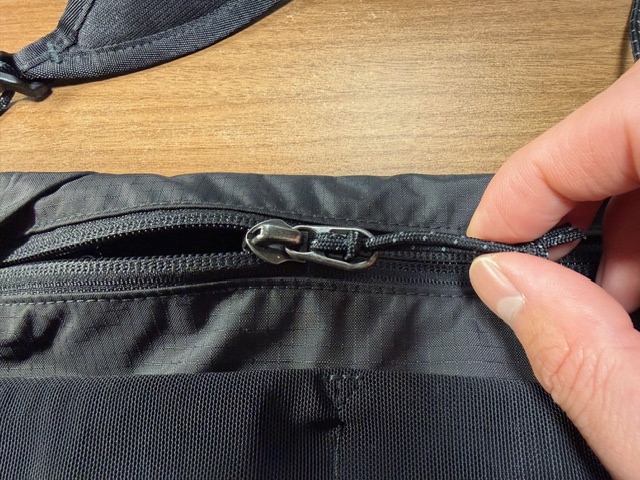 そして、ちょっとした時にスマホなどを収納したい表のストレッチメッシュポケットも使用し続けるうちにゴムが伸びないか心配です。。。
