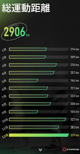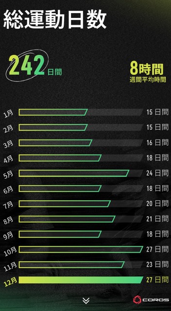 ちなみにこちらはCorosによる一年間のアクティビティ振り返りです。