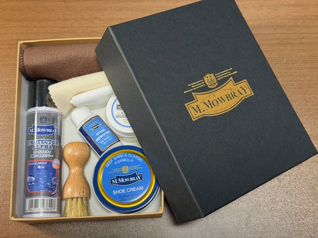 履いた後はブラシで汚れを落とし、シューキーパーで脱臭・湿気除去、そして型をキープしています。