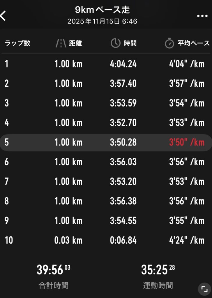 をそれぞれこなしつつ、レース1週間前となる11月15日(土)に最終ペース走を実施!