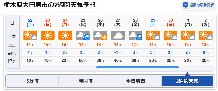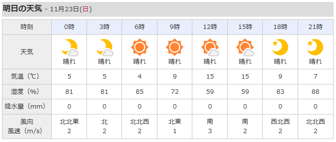 サイトの予報をチェックしたところ、ほぼほぼ晴もしくは曇り予報です!