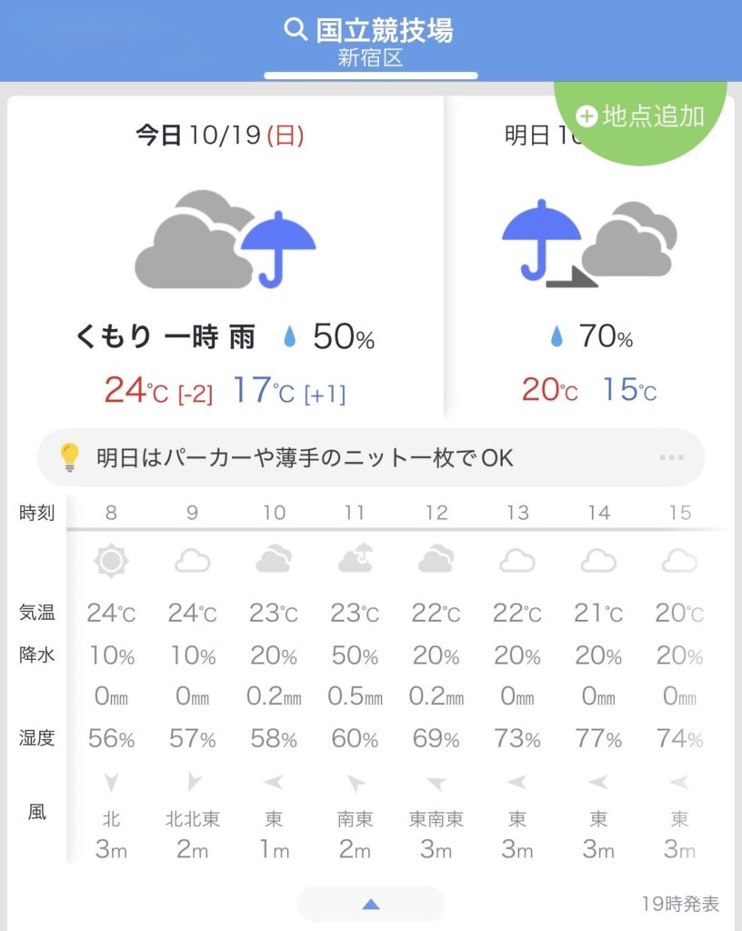 東京は10月に入ってから20℃前後の日が続き、とても走りやすい気温でしたが、この日は24℃まで上昇。