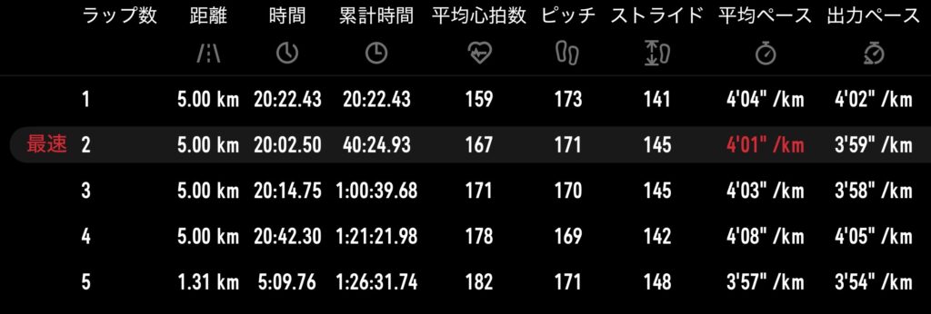 しかも4km地点でこの日最速ラップも記録し、心拍はすでに160後半台でしたので、血液もドロドロ状になっていたことが予想されます。