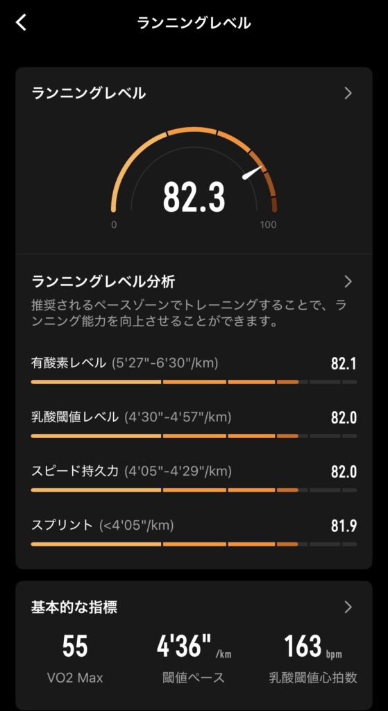 VO₂Maxは前月から+1で55になりました。