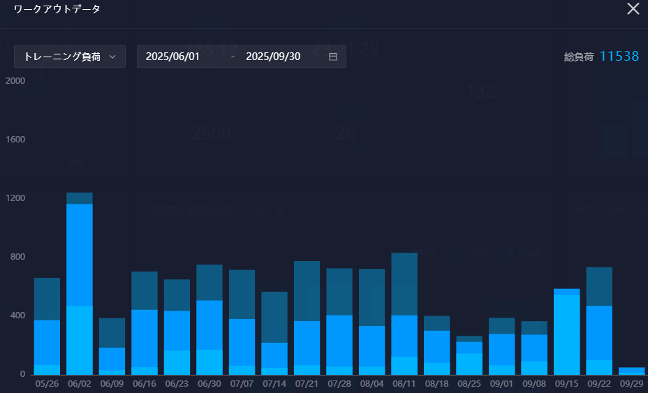前述したようにトレーニング頻度は8月と変わらずですが、走行距離を落としているので、今のところそこまで疲労の蓄積は感じていないです。