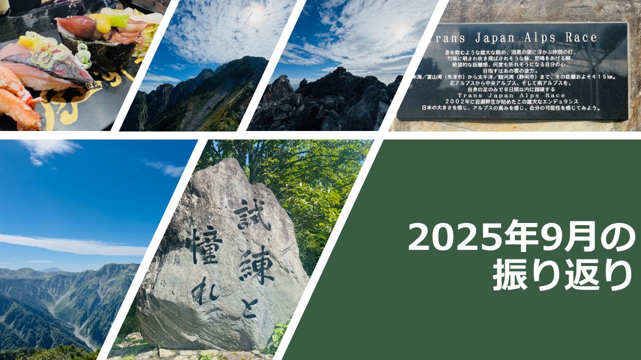 9月はややイレギュラーな月になりましたが、夏の疲労を抜きつつ、剱岳・早月尾根ピストンで大きな刺激を入れることができたのが最大の収穫でしたね!