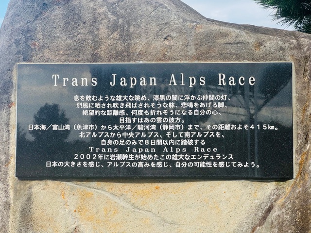 ここからゴールの静岡県・駿河湾まで約415kmを縦断する過酷なレースですが、その過酷さがこの石碑に凝縮されています。