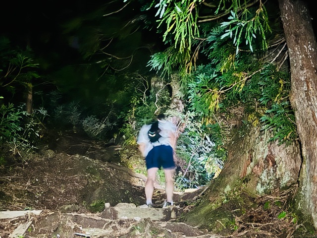 辺りは真っ暗闇。登山前に仲間のヘッデンが壊れてしまうというトラブルがありましたが、予備で持ってきたハンドライトで事なきを得ました。トレラン大会でライト予備持参とありますが、こういうことなんだなと今後の学びにもなりましたね。