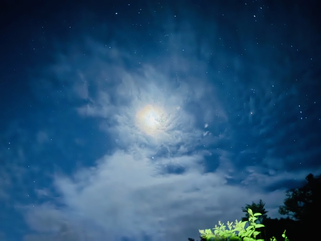 時刻は4:30、三日月と満点の星空が夜空に広がっています。