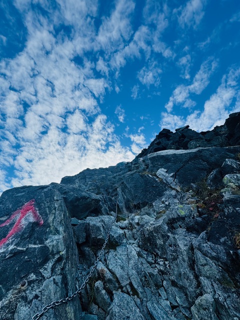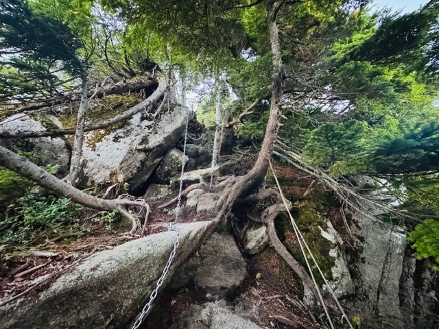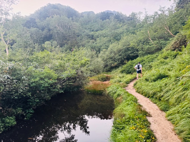 唯一の水場といっても飲める水場ではないですが、この沼を通過後は少しずつ鎖場や岩場が多くなり、テクニカルな登りのフェーズに突入していきます。