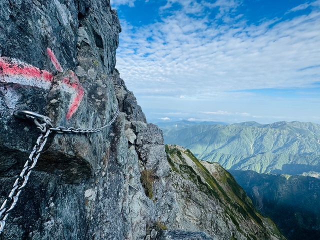 一般登山道でもハシゴや鎖場が連続し、高度な技術と体力が必要とされ、毎年滑落で命を落とす登山者も後を絶えず、日本の一般登山道の中でも最も危険な山とも言われています。