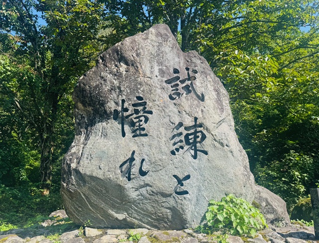 人気と危険を隣り合わせた山を称して、登山口入り口にある【試練と憧れ】という石碑も有名です。