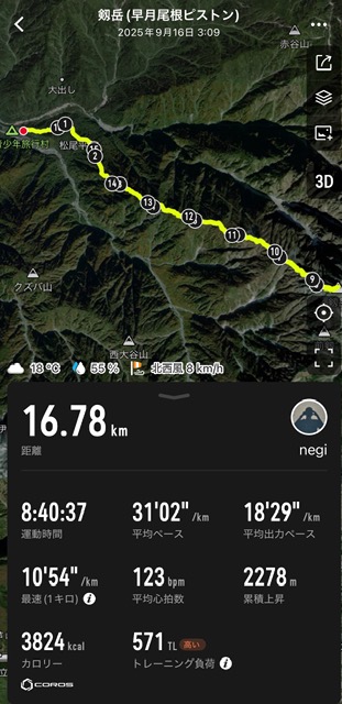 が、エイドのあるトレランレースよりもどうしても荷物は多くなり、12リットルではパンパンに膨れ上がったので、もう少し容量に余裕のあるザックでも良かったかもしれません。
