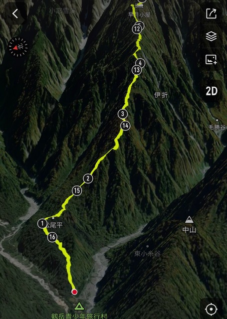 ヘッデンの灯りのみが頼りで、時折他の登山者の熊鈴が人の気配を感じさせますが、それ以外は沢を流れる水の音と自分たちの足音のみが暗黒の森林帯に響き渡ります。