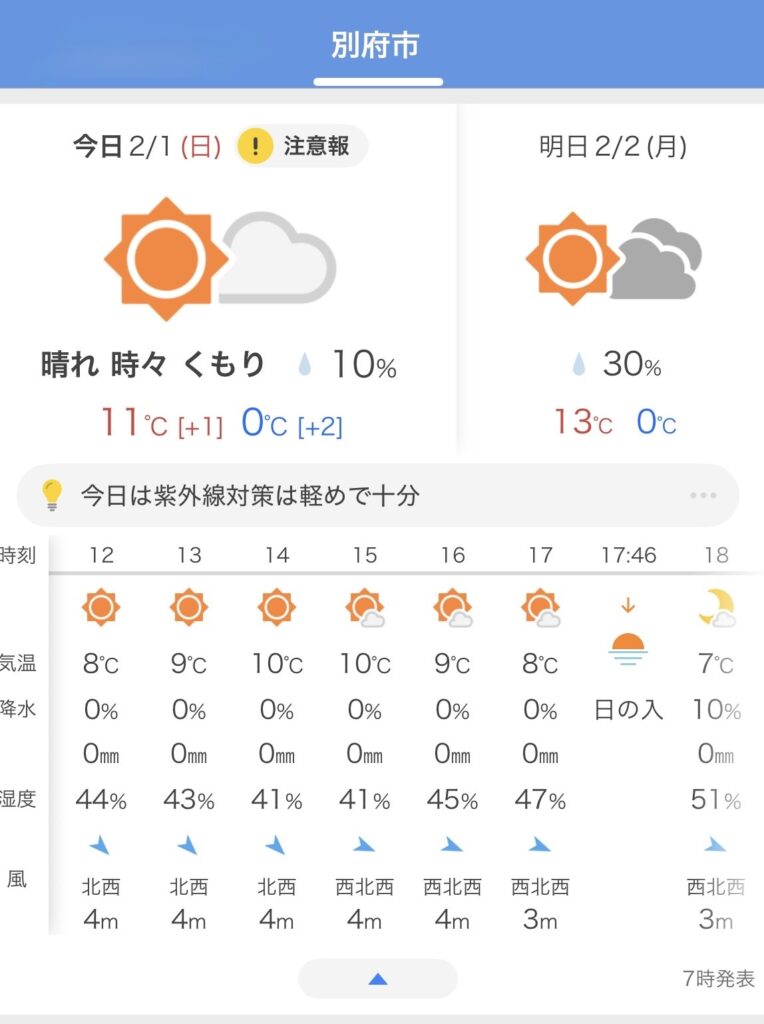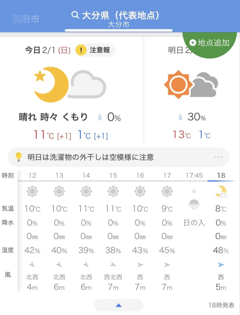 別大の会場となる大分県には、有休をとって前々日の1/30(金)から入っていました。