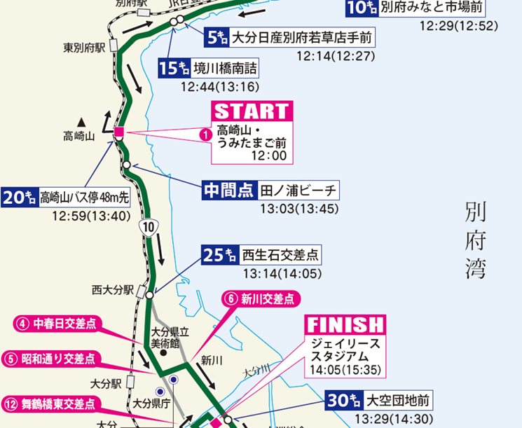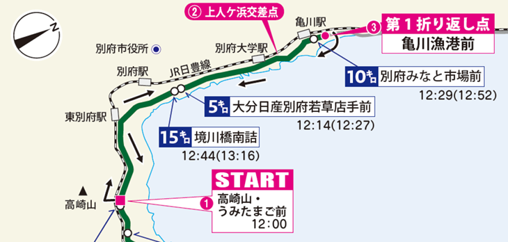 ちょっと気持ち多めに取ったのは、別大が正午スタートのためです。